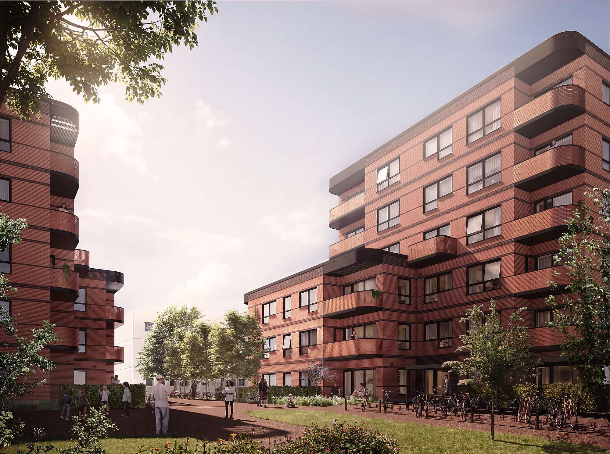 Bebyggelsen disponeres i flere boligblokke, som varierer i højde og placering. Det giver mulighed for at skabe opholdsrum samt grønne forbindelser mellem husene og sikrer samtidig gode lysforhold i både boliger og uderum. Bygningerne opføres i op til seks etager og får altaner, der giver beboerne adgang til private uderum og samtidig bidrager til at skabe et åbent og levende udtryk i arkitekturen.