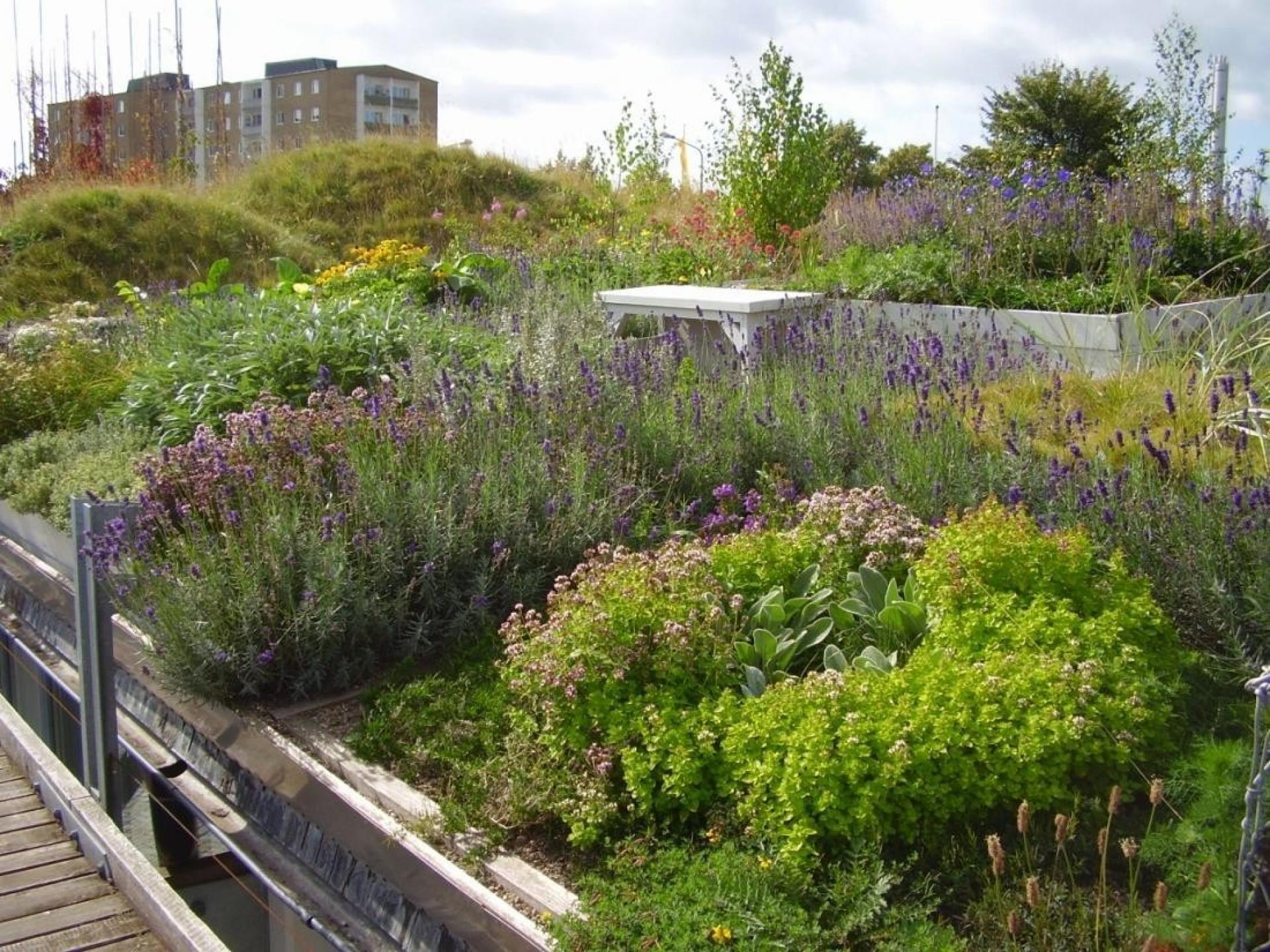 Der bliver større og større fokus på at etablere grønne tage - her ses et af slagsen i Malmø. Foto Grønnera Stad AB.