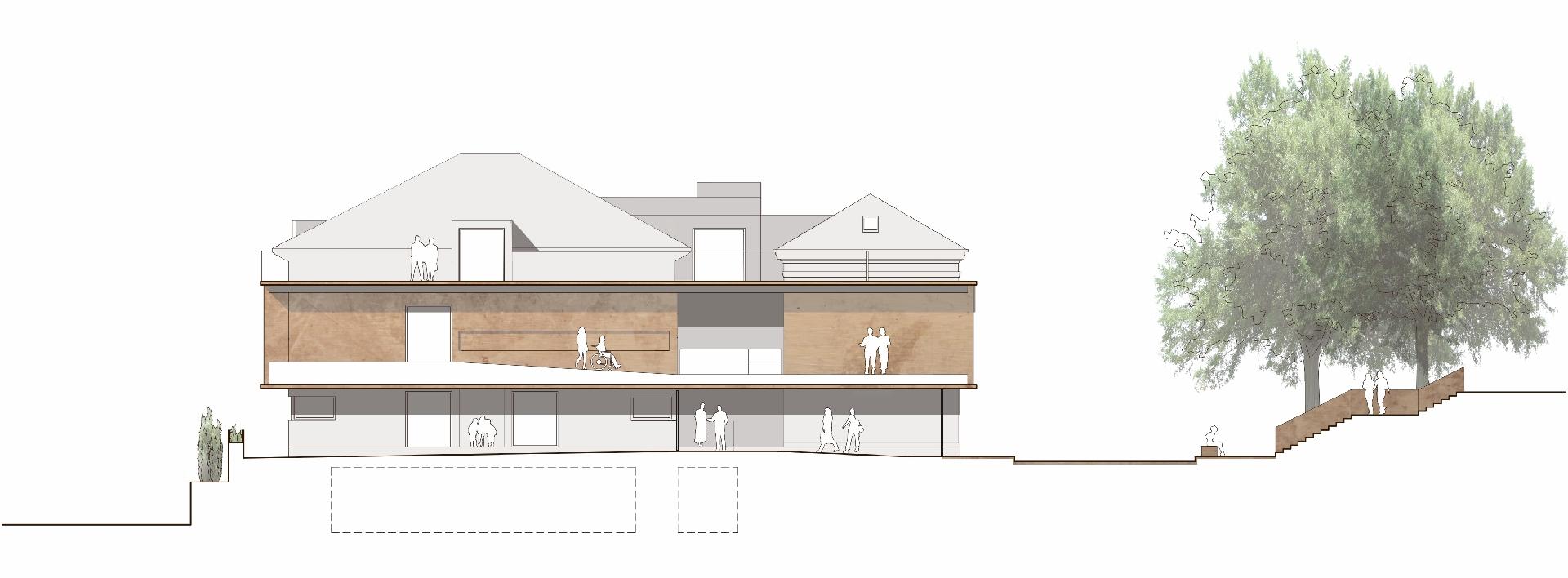 Overordnet set får de eksisterende bygninger lov til at bevare deres nuværende ydre udtryk, men facaden får ny farve, som skal binde bygningerne sammen med det eksisterende museum på den anden side af vejen.