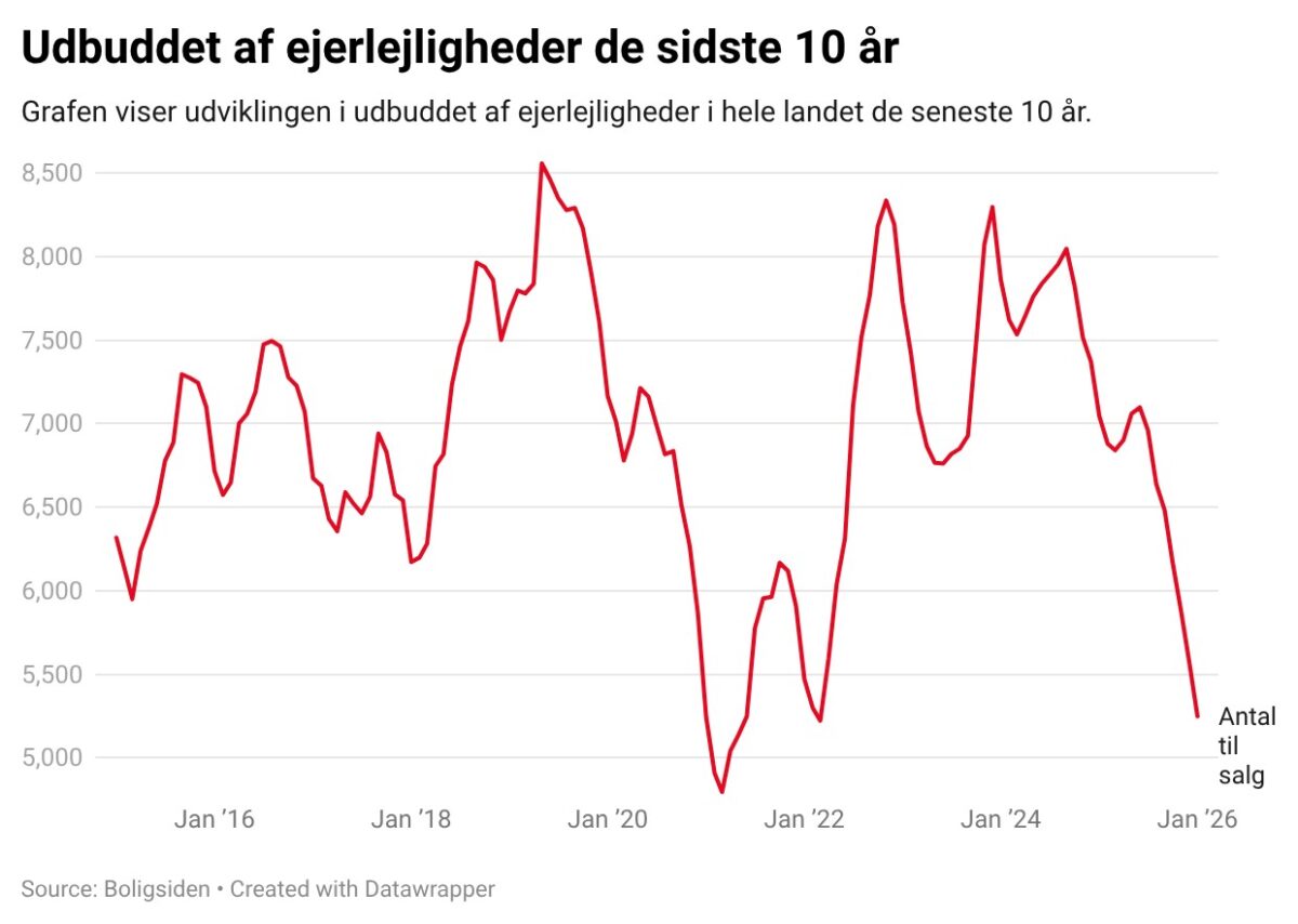 – For både huse og lejligheder hænger faldet i udbuddet især sammen med en øget handelsaktivitet i 2025, forklarer hun.